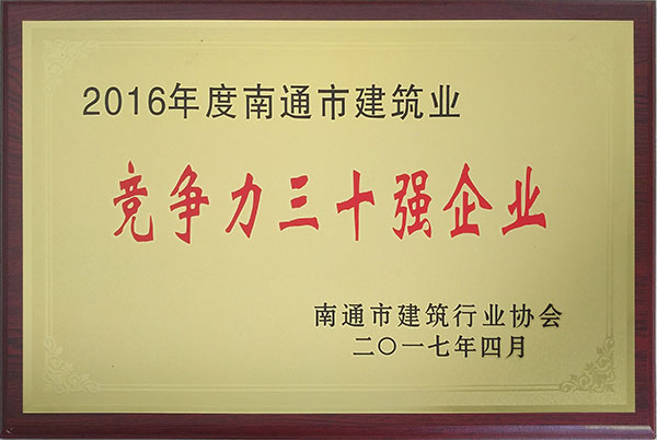公司榮獲2016年度南通市建筑業(yè)競爭力30強