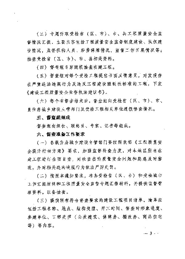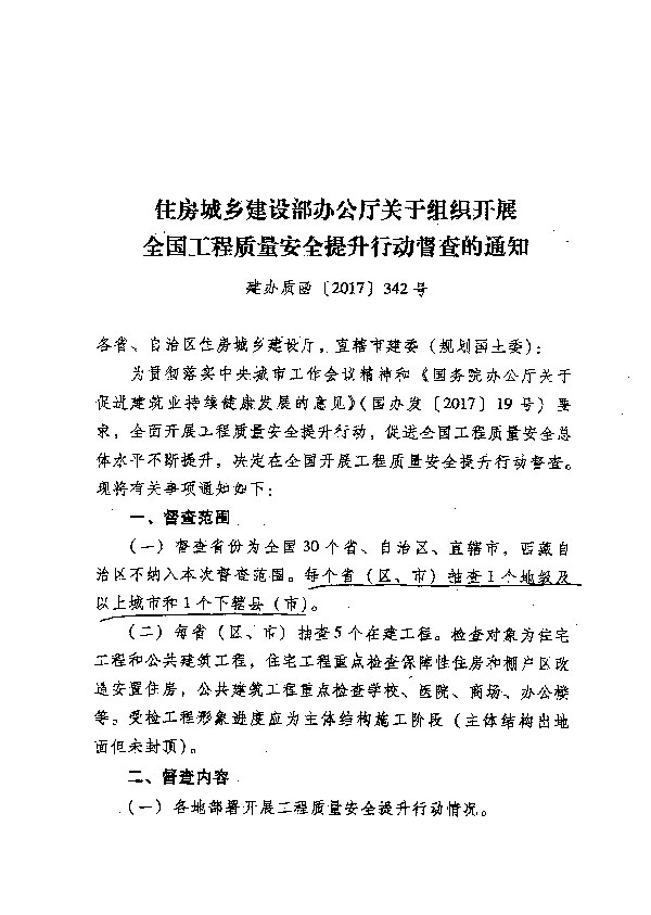 關于組織開展全國工程質量安全提升行動督查的通知