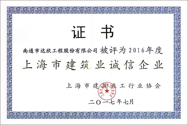 第一工程公司連續(xù)十年榮獲“上海市建筑業(yè)誠(chéng)信企業(yè)”