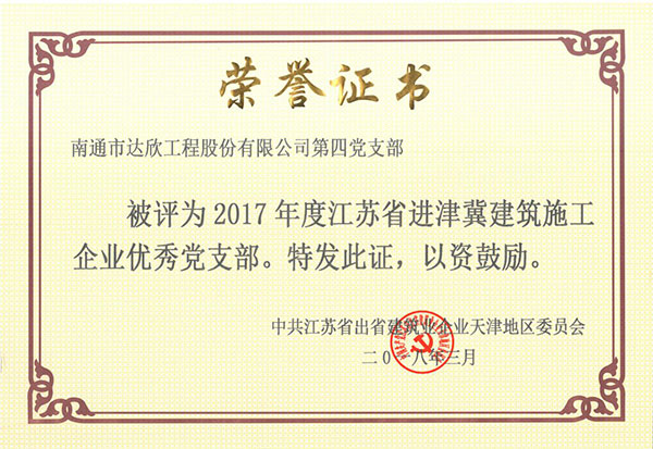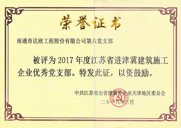 公司在冀連續(xù)六年榮獲“江蘇省出省施工先進企業(yè)”