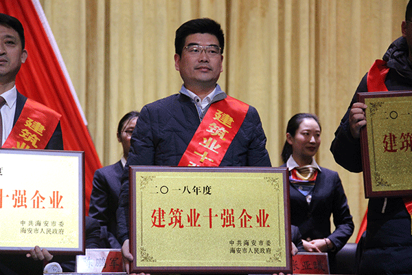 2月11日下午,海安市2018年度總結(jié)表彰大會在市文化藝術(shù)中心舉行,對2018年度取得顯著成績的757個(gè)先進(jìn)單位和538名先進(jìn)個(gè)人給與表彰。我公司在表彰大會上一舉囊括七項(xiàng)殊榮: