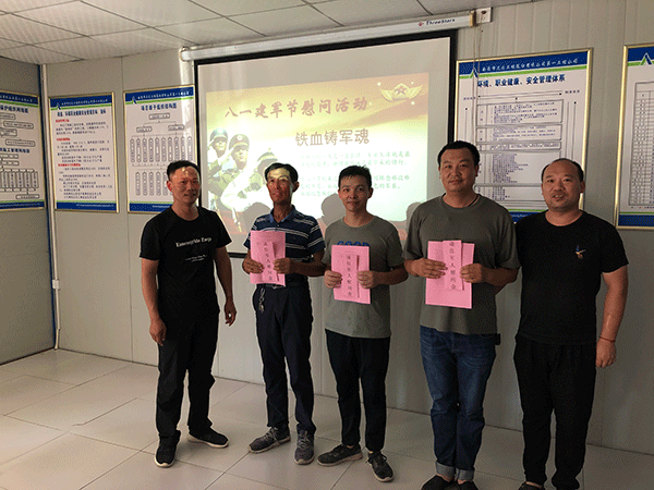 另訊,工程公司以項(xiàng)目部為單位積極開展轉(zhuǎn)業(yè)退伍軍人座談會,座談會上,首先由項(xiàng)目經(jīng)理宣讀了集團(tuán)公司“致轉(zhuǎn)業(yè)退伍軍人的慰問信”,向轉(zhuǎn)業(yè)退伍軍人致以節(jié)日的問候和祝福,并送上慰問金。轉(zhuǎn)業(yè)退伍軍人們給大家講述他們當(dāng)兵的歷程,重溫了那段激情燃燒的歲月,并感謝公司和項(xiàng)目部的關(guān)心,表示將繼續(xù)發(fā)揚(yáng)軍人的優(yōu)良傳統(tǒng),退伍不褪色,一如既往的以軍人的標(biāo)準(zhǔn)立足崗位,勇于奉獻(xiàn)。