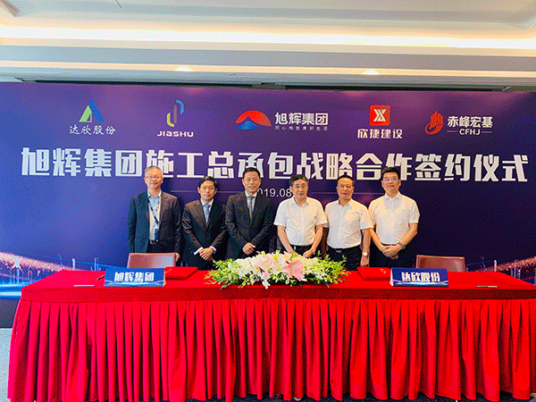在旭輝集團(tuán)執(zhí)行總裁陳東彪先生與達(dá)欣集團(tuán)董事長(zhǎng)馬和軍先生的共同見(jiàn)證下,旭輝集團(tuán)運(yùn)營(yíng)中心總經(jīng)理劉峰與達(dá)欣集團(tuán)黨委書(shū)記劉厚純代表雙方簽約施工總承包戰(zhàn)略合作協(xié)議。