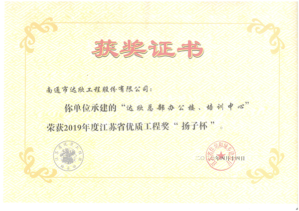 另訊,江蘇省住房和城鄉(xiāng)建設(shè)廳公布了2019年度江蘇省優(yōu)質(zhì)工程獎“揚子杯”評選獲獎項目名單,由第一工程公司承建的“達(dá)欣總部辦公樓培訓(xùn)中心”入選其中。該項目先后獲得全國AAA級安全文明標(biāo)準(zhǔn)化工地、江蘇省建筑業(yè)新技術(shù)應(yīng)用示范工程、江蘇省建筑施工標(biāo)準(zhǔn)化文明示范工地、南通市“紫瑯杯”優(yōu)質(zhì)工程等榮譽。