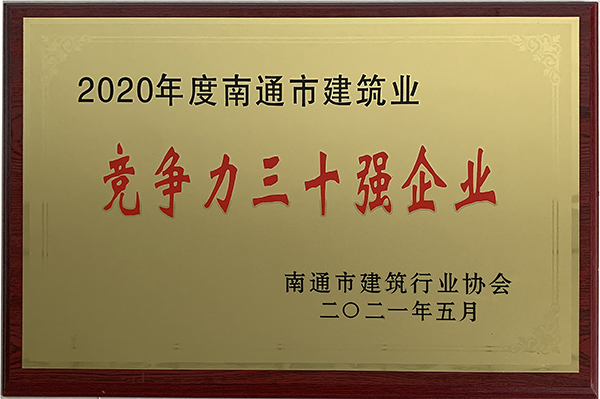集團(tuán)榮獲南通市建筑業(yè)競(jìng)爭(zhēng)力三十強(qiáng)企業(yè)