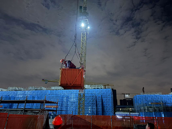 當晚22時30分,項目施工現(xiàn)場已進入夜間停工狀態(tài)。塔吊司機在完成工作后,沿塔身爬梯下行時,突然感到手部無力,無法繼續(xù)移動,被困在離地面約30米的爬梯中間,停留在休息平臺上。高空環(huán)境加上夜間視線受限,司機體力逐漸不支,情況十分危急。