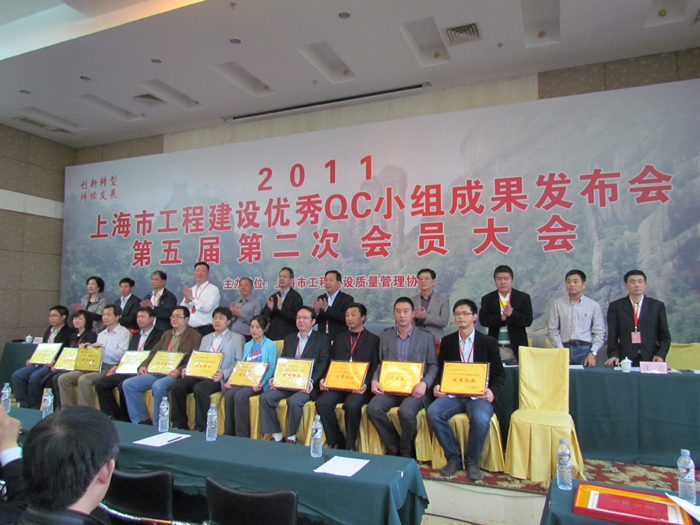 4月17日上海市工程建設(shè)質(zhì)量管理協(xié)會(huì)召開2011年建設(shè)工程優(yōu)秀QC小組活動(dòng)成果發(fā)布會(huì)暨第五屆第二次會(huì)員大會(huì)。第一工程公司選送的 “攻克3m厚大體積砼底板裂縫”、“提高施工現(xiàn)場(chǎng)安全達(dá)標(biāo)優(yōu)良率”、“推行‘四節(jié)一環(huán)?!行Ы档凸こ坛杀尽?、“提高建筑幕墻工程的施工質(zhì)量”、“有效控制填充墻內(nèi)混凝土構(gòu)造柱裂縫”、“有效控制斜屋面混凝土施工質(zhì)量”、“提高YTONG砂加氣砼砌塊砌筑合格率”、“有效提高模板工程施工質(zhì)量”、“降低明珠城三期工程鋼筋損耗”等九項(xiàng)QC成果均參加本次活動(dòng)的發(fā)布與交流。這次江蘇省在滬企業(yè)參加QC成果發(fā)布、交流共83篇,我公司就占據(jù)其中的14%,得到了駐滬辦領(lǐng)導(dǎo)的充分肯定。工程公司也被上海市工程建設(shè)質(zhì)量管理協(xié)會(huì)評(píng)為2011年上海市建設(shè)質(zhì)量管理小組活動(dòng)優(yōu)秀企業(yè)。