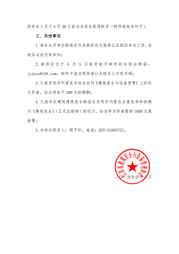 關(guān)于征集華東地區(qū)建筑安全聯(lián)誼會三屆三次會議論文的通知