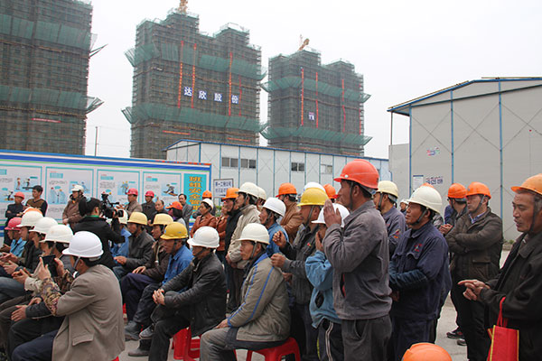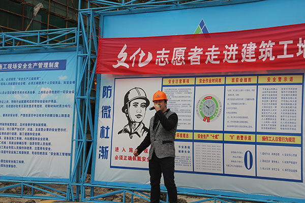 文化志愿者的精彩演出受到了職工們的熱烈歡迎,“我平時都在高空作業(yè),難得有這樣的機(jī)會坐下來看現(xiàn)場表演,這樣的活動讓我們感到很開心?!惫び牙钊蕠θ轁M面地說。