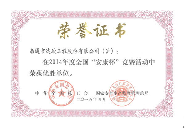 近日,第一工程公司被全國總工會和國家安全生產監(jiān)督管理總局聯(lián)合授予2014年度“全國‘安康杯’競賽優(yōu)勝單位”稱號,這也是公司首次獲此殊榮。