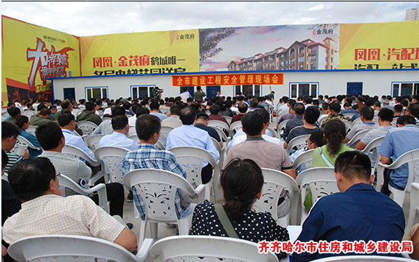 8月25日上午,齊市建設(shè)安全管理現(xiàn)場會在我公司施工總承包的鳳凰?金瑞府項(xiàng)目舉行。市住建局黨委書記、局長黃宇、市住建局黨委委員副局長王紳,全市各縣(市)區(qū)住建局主管副局長、安全站站長,在建工程建設(shè)、監(jiān)理、施工區(qū)企業(yè)負(fù)責(zé)人,企業(yè)安全負(fù)責(zé)人、總監(jiān)理工程師、安全監(jiān)理工程師、項(xiàng)目負(fù)責(zé)人、技術(shù)負(fù)責(zé)人500多人參加會議。