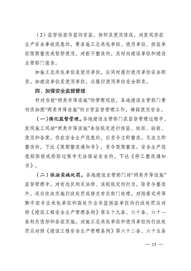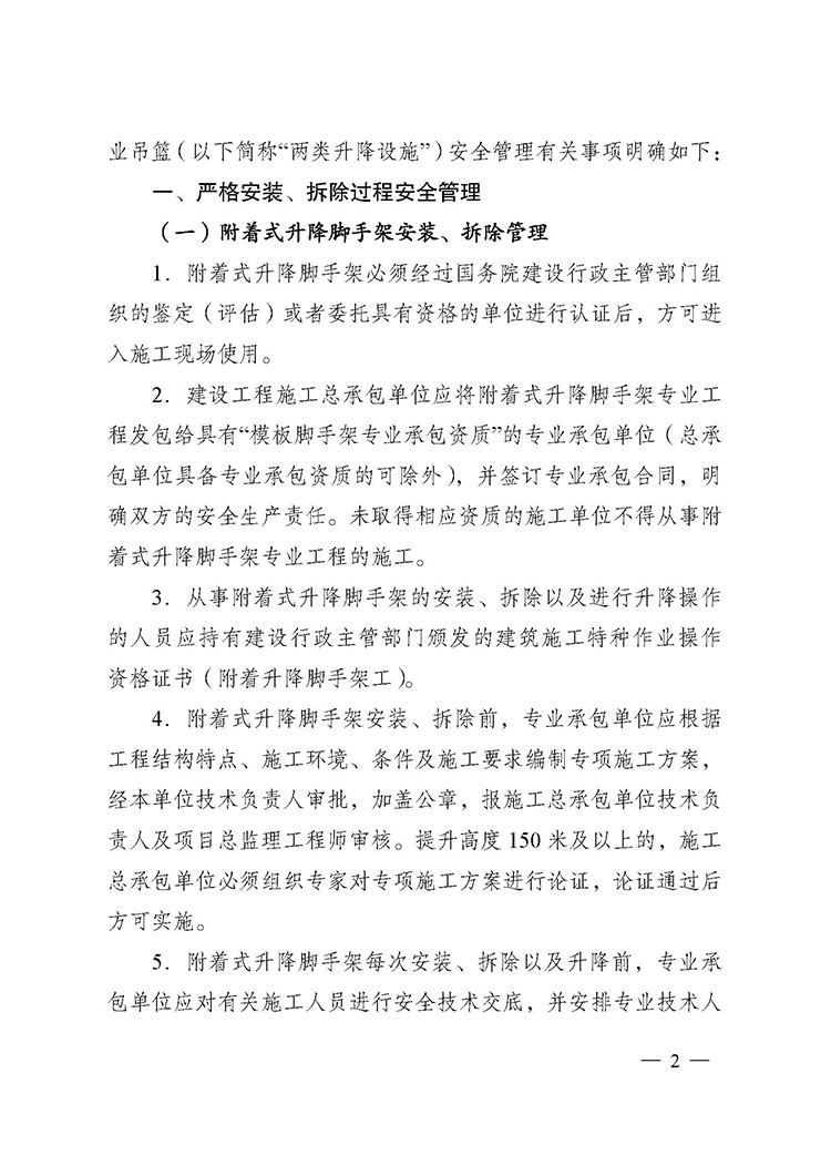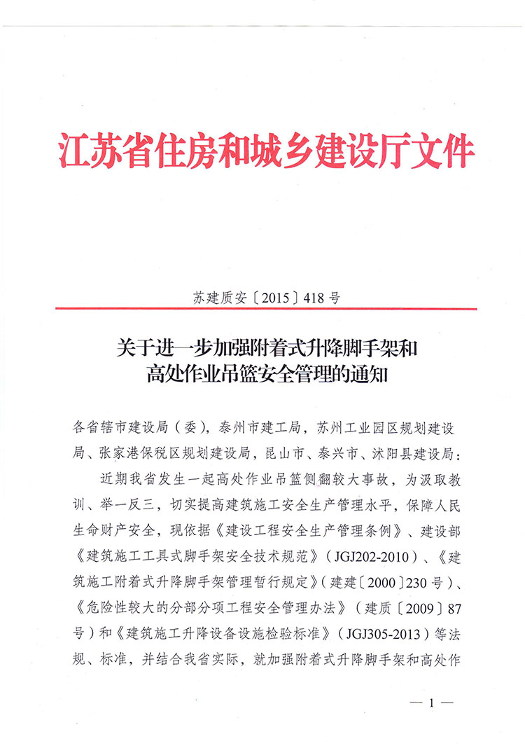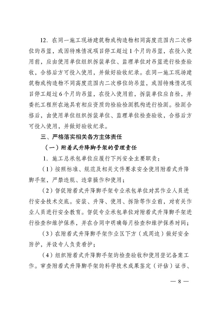 關(guān)于進(jìn)一步加強(qiáng)附著式升降腳手架和高處作業(yè)吊籃安全管理的通知